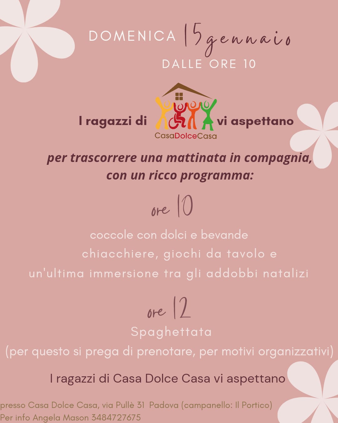 Domenica 15 gennaio alle 10, al civico 31 di via Pullè, chi lo desidera può passare qualche ora in compagnia con i ragazzi di Casa Dolce Casa. Suonate al campanello “Il Portico”.